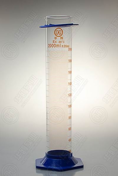 MEASURING CYLINDER with spout , plastic hexagonal base 2000ML